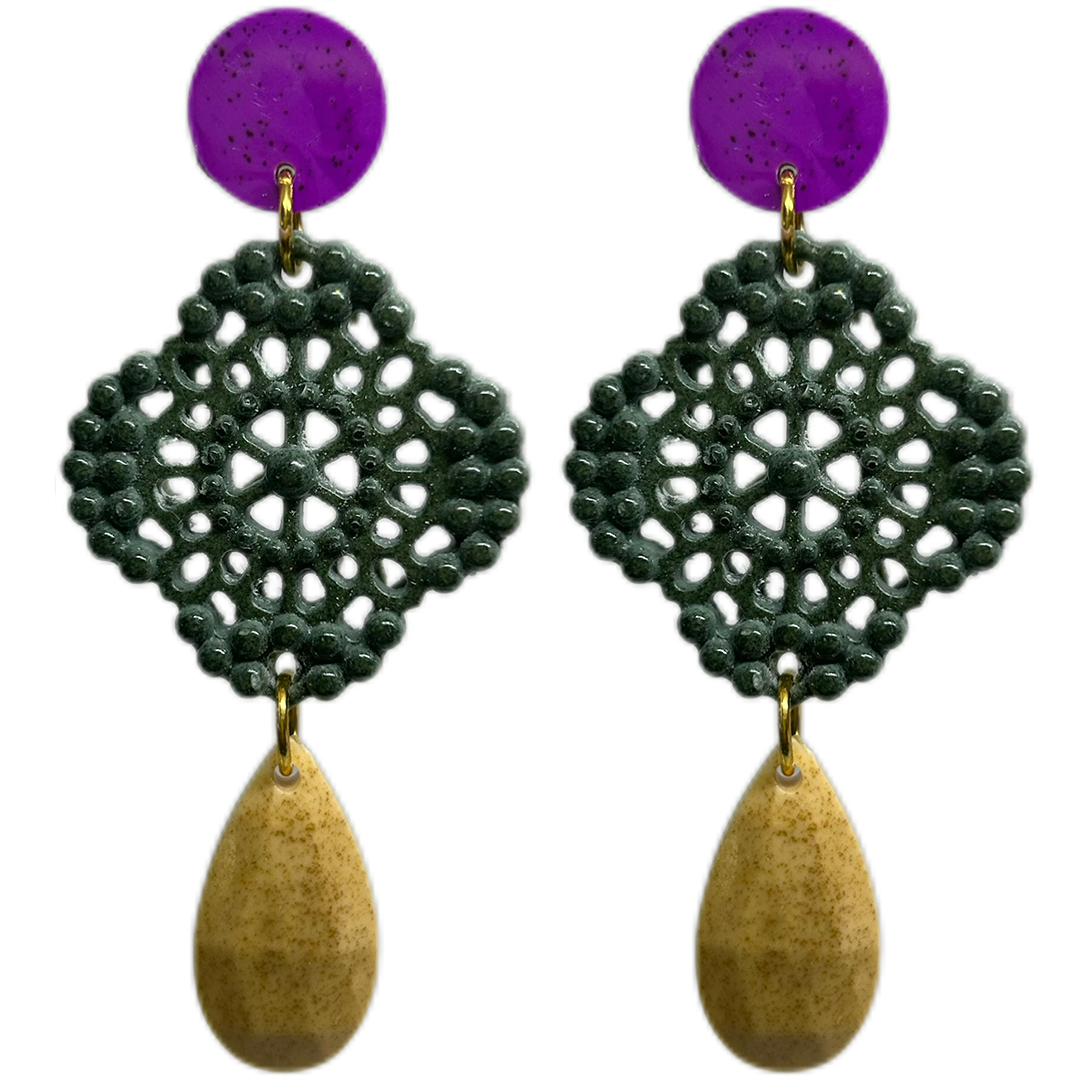 orecchini PIZZO: bouganville . verde militare – giallo senape